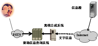 離線合成系統(tǒng)在用戶電話呼入前,將需要播放的文本信息預先轉換成語音文件存放在系統(tǒng)中,當電話用戶呼入系統(tǒng)后,系統(tǒng)直接向用戶播放事先生成的語音文件。離線合成方式適用于作賽事快報、明星風采、賽場花絮等公共信息類信息服務。