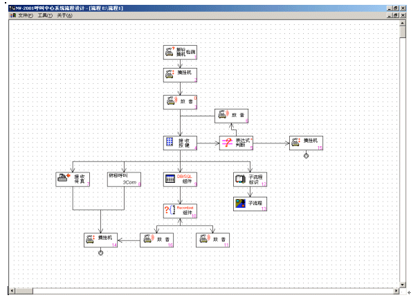 將需要重復播放的話語錄制成通用的語音文件,通過與放音模塊結(jié)合,簡單地掛放在語音樹的相應位置,就可以實現(xiàn)語音自動回復。如果需要調(diào)整語音播放的內(nèi)容、次序,只需更換語音文件內(nèi)容,變更放音模塊在語音樹的位置。NV-IVR內(nèi)嵌文語轉(zhuǎn)換功能(TTS)。對于經(jīng)常變化、或?qū)崟r生成的數(shù)據(jù)(如電話費)可以通過內(nèi)置TTS自動轉(zhuǎn)化成語音,播放給電話用戶。同時NV-IVR支持語音識別技術,對無法通過電話按鍵選擇的要求,如定票選擇北京-上海,用戶可以用語音輸入(北京),配合按鍵選擇達到目的。并且NV-IVR可以應客戶需求將語音錄制到留言信箱,以備呼叫中心人員跟蹤服務。