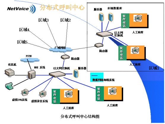 由于代理技能差異、語言差異、呼叫量的差異,以及客戶中心客戶所在地的變化及每個客戶對各自所擁有的用戶資料的保密性需求,分布式呼叫中心往往更適合各類企業(yè)的實際。分布式呼叫中心的建立,意味著需要在多個分中心之間進行統(tǒng)一的呼叫控制及語音與同步數(shù)據(jù)轉(zhuǎn)移。NBX網(wǎng)絡交換機的引入,兩網(wǎng)合一的特性使分布式呼叫中心的建立成為了一件非常容易的事情。呼叫中心可以擴展到多個位于不同地域的局域網(wǎng)上,通過路由選擇可以自動地把呼叫(