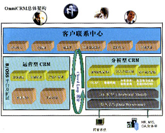 經(jīng)營分析型CRM: OmniVision是OmniCRM方案中經(jīng)營分析型CRM的核心,它采用數(shù)據(jù)倉庫、ETL、OLAP分析、靈活報表展現(xiàn)及數(shù)據(jù)挖掘等技術(shù),結(jié)合電信業(yè)務(wù)的深厚經(jīng)驗,進行用戶分析、業(yè)務(wù)分析、收益分析、大客戶分析、營銷分析、競爭分析、服務(wù)質(zhì)量分析等主題分析。 客戶聯(lián)系中心: OmniContactCenter是OmniCRM方案中的客戶聯(lián)系中心,包括多媒體呼叫中心、網(wǎng)上用戶自服務(wù)系統(tǒng)(網(wǎng)上營業(yè)廳)、直郵傳真處理中心等。所有的市場活動都是由客戶聯(lián)系中心傳遞給客戶的,所有的客戶反饋和請求都是由這里反饋給分析系統(tǒng)的。 大客戶管理:OmniVIP OmniVIP是亞信公司結(jié)合深厚的行業(yè)知識,專門針對集團大客戶、商業(yè)大客戶、潛在大客戶等各類電信大客戶,從分析和運營兩個方面為各電信公司提供的完整而領(lǐng)先的大客戶管理方案,它能夠為運營商提供現(xiàn)有及潛在大客戶的全方位視圖,包括客戶行為、業(yè)務(wù)情況、商業(yè)獲利率、競爭情況等,挖掘潛在商機,使利潤最大化;能夠使運營商有效地降低成本;能夠使運營商為大客戶提供真正的個性化服務(wù);能夠使運營商預(yù)測、吸引并發(fā)展?jié)撛诘拇罂蛻;能夠使運營商有效地管理大客戶服務(wù)人員,提高客戶的滿意度和忠誠度;能夠通過OmniContactCenter、代理商、營業(yè)廳、SMS、Email等全面的渠道管理,幫助電信運營商對大客戶進行“全員、全程、全方位”服務(wù),從而全方位地為大客戶提供最完善優(yōu)質(zhì)的服務(wù)。 市場管理:OmniMarketing OmniMarketing根據(jù)分析系統(tǒng)得出的結(jié)論,產(chǎn)生相應(yīng)的市場活動發(fā)送給運營型CRM部分執(zhí)行,同時將執(zhí)行結(jié)果和反饋收集回來進行比較、評價和進一步的分析,以期設(shè)計出更合理的資費和更貼切的業(yè)務(wù)給用戶。 銷售管理:OmniSFA 隨著競爭的加劇,運營商的銷售也將從傳統(tǒng)的柜臺坐等的經(jīng)營模式轉(zhuǎn)變成有針對性的主動出擊發(fā)展客戶的模式。銷售管理系統(tǒng)就是提供了針對銷售人員的銷售輔助工具,其中包括任務(wù)分配與下達(dá)、日程安排、客戶資料管理、銷售機會管理、銷售漏斗、報價管理、訂單合同管理、銷售業(yè)績考評和資金評定等模塊。 通過OmniSFA,銷售工作將按照科學(xué)化正規(guī)化流程化的方式來進行。 運作型和分析型CRM的互動循環(huán)