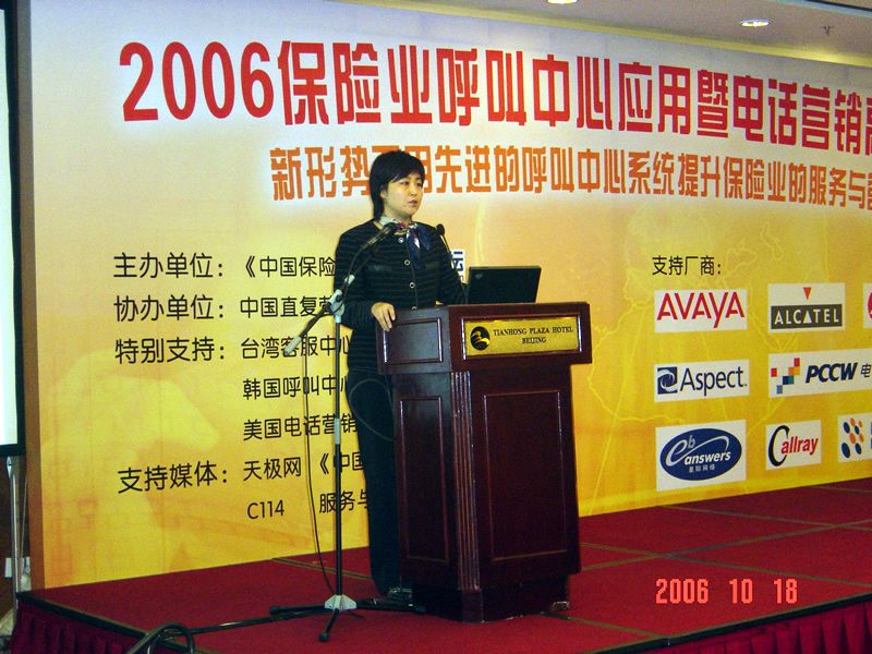 。。2006年10月18日,2006保險(xiǎn)業(yè)呼叫中心應(yīng)用暨電話營銷高峰研討會(huì)在北京天鴻科園大酒店隆重召開,以下是大會(huì)主題演講的相關(guān)圖片報(bào)道: