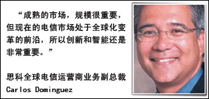 而當年使年輕的Volpi倍感溫暖的Dominguez,對兒童教育事業(yè)情有獨鐘,有著一半華裔血統(tǒng)的他,看上去非常親切。作為思科全球電信業(yè)務的負責人,中國市場對他來說稔熟心間,對于國內(nèi)運營商在服務提供和業(yè)務方面的變化,他感觸頗深:“中國運營商對細分市場,例如企業(yè)級市場、中小企業(yè)市場、消費者市場等,都有深刻的了解。另外他們也期待更高水平以及更豐富的業(yè)務,比如說外包服務、安全服務、ICP服務以及IP電話服務!