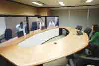10月24日,在思科公司位于香港灣仔鷹君大廈的一間會議室,包括思科CEO錢伯斯在內(nèi)的六名高管已經(jīng)“坐”在橢圓型的會議桌一側(cè)。“Hi!”隨著錢伯斯的一聲招呼,會議室內(nèi)的人這才發(fā)現(xiàn),正在講話的“錢伯斯”是在三塊連接起來的等離子屏幕上,而此刻他真實的位置是在思科位于美國硅谷的總部。65英寸的1080P高清晰屏幕上,錢伯斯等人的影像如真人大小,加上三塊屏幕被設(shè)計成會議桌的另外一半,讓人誤以為錢伯斯真的來到了香港。