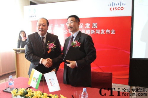 CTI論壇(ctiforum)1月12日消息(記者 張塵):2010年1月11日,北京——“攜手共贏 共促發(fā)展——天獅集團(tuán)與思科公司戰(zhàn)略項(xiàng)目新聞發(fā)布會(huì)”在北京召開,雙方共同宣布,天獅集團(tuán)國(guó)際健康產(chǎn)業(yè)園網(wǎng)絡(luò)平臺(tái)成功啟用,并正式達(dá)成合作戰(zhàn)略。天獅集團(tuán)董事長(zhǎng)兼總裁李金元先生與思科全球副總裁、思科中國(guó)副董事長(zhǎng)兼總裁林正剛先生出席新聞發(fā)布會(huì),并進(jìn)行簽約儀式。通過本次強(qiáng)強(qiáng)聯(lián)合,思科面向服務(wù)的網(wǎng)絡(luò)架構(gòu)(SONA)全面部署于天獅集團(tuán)國(guó)際健康產(chǎn)業(yè)園,為天獅集團(tuán)業(yè)務(wù)的穩(wěn)定持續(xù)發(fā)展以及信息化水平的進(jìn)一步提升提供了可靠保證,同時(shí)也為雙方未來更深層次的合作打下了堅(jiān)實(shí)的基礎(chǔ)。