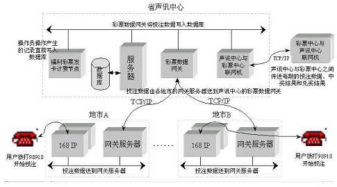 福利彩票業(yè)務(wù)一般是由用戶直接在彩票投注站點購買彩票進行投注,由于投注站點數(shù)量較少,在時間、空間上限制著彩票投注業(yè)務(wù)的進一步發(fā)展。所謂福利彩票電話投注業(yè)務(wù),即用戶通過電話進入聲訊系統(tǒng),按照系統(tǒng)提示音進行相應(yīng)的按鍵操作,從而完成福利彩票投注業(yè)務(wù)。福利彩票電話投注系統(tǒng)建成后將為用戶提供方便快捷的彩票投注方式,通過電信網(wǎng)將福利彩票的業(yè)務(wù)延伸到千家萬戶。