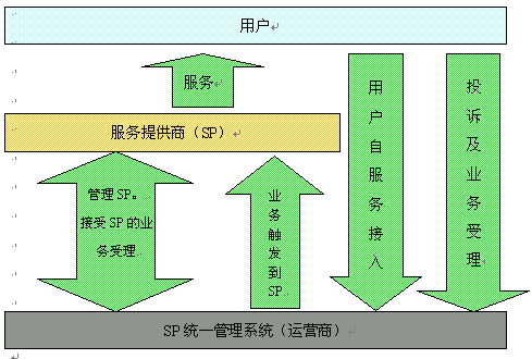 在對(duì)SP統(tǒng)一管理的過程中,SP、新太科技、運(yùn)營(yíng)商、運(yùn)營(yíng)商用戶組成了一條完整的價(jià)值鏈,如下圖所示: