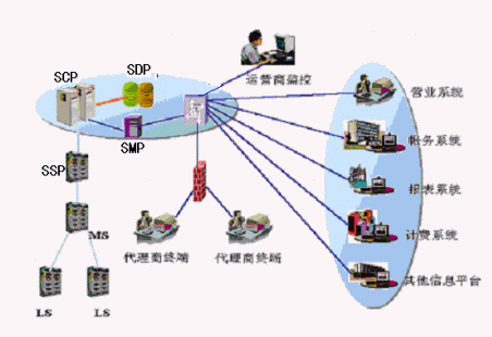 4、SMAP:負(fù)責(zé)在一定的權(quán)限內(nèi)為代理商提供接入訪問功能,支持代理商通過撥號或DDN專線接入代理商管理系統(tǒng),代理商管理系統(tǒng)存儲代理商所有數(shù)據(jù),提供Web服務(wù)方式的應(yīng)用功能界面。代理商管理系統(tǒng)能夠?qū)I(yè)務(wù)受理的數(shù)據(jù)發(fā)送到智能網(wǎng)、交換機(jī)系統(tǒng),完成代理商對所代理業(yè)務(wù)的實(shí)時(shí)處理。