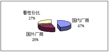 。5)向誰(shuí)購(gòu)買:鑒于國(guó)內(nèi)并沒(méi)有知名度很高的CRM實(shí)施廠商,而國(guó)外的著名廠商在國(guó)內(nèi)的品牌宣傳也不足,所以我們的調(diào)查表中只設(shè)了:國(guó)內(nèi)廠商、國(guó)外廠商和根據(jù)性價(jià)比進(jìn)行選擇三個(gè)項(xiàng)目,與購(gòu)買能力對(duì)照,預(yù)期實(shí)施金額在100萬(wàn)以下的企業(yè),一般側(cè)重國(guó)內(nèi)廠商,而實(shí)施金額在100萬(wàn)以上企業(yè)則側(cè)重國(guó)外企業(yè)。