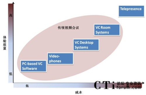 網(wǎng)真產(chǎn)品與企業(yè)的其他視覺溝通產(chǎn)品不同,不同于以軟件為基礎(chǔ)的視頻通信應(yīng)用、電話視頻、以硬件為基礎(chǔ)的桌面視頻系統(tǒng)及群體視頻會議等各類傳統(tǒng)視頻系統(tǒng)。Frost