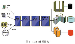 iUTBS的體系結構與電子商務系統(tǒng)的體系結構是一致的,服務器由4級結構組成; Web服務器、動態(tài)網(wǎng)頁生成器、應用服務器、應用集成服務器。如圖2所示。