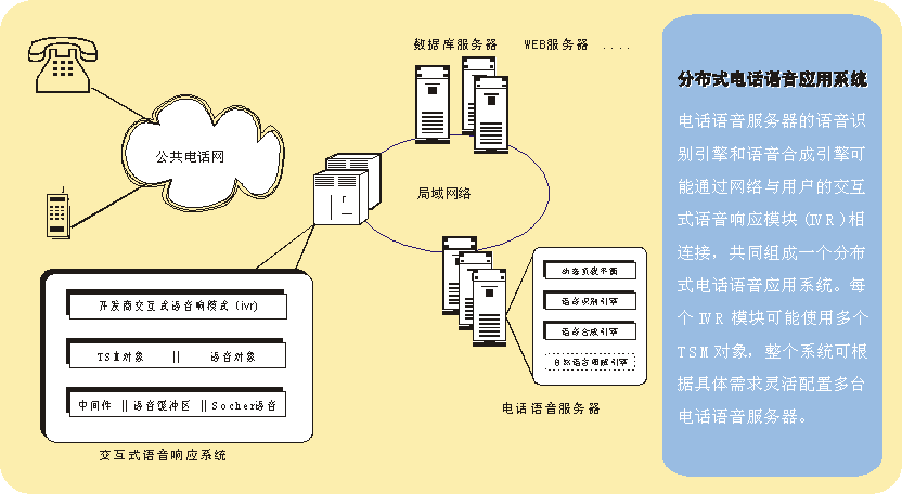 。 支持客戶服務(wù)器模式:可以將執(zhí)行傳統(tǒng)的電話語音流程的應(yīng)用系統(tǒng)作為客戶機(jī),使用專門的服務(wù)器提供語音識(shí)別的計(jì)算。