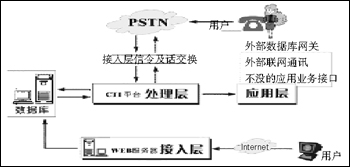 處理層為系統(tǒng)核心層,主要負(fù)責(zé)系統(tǒng)的管理及指揮,如系統(tǒng)數(shù)據(jù)庫IVR語音交互式服務(wù)、系統(tǒng)數(shù)據(jù)庫和移動(dòng)網(wǎng)(聯(lián)通和移動(dòng))及各傳呼臺(tái)信令的交換。