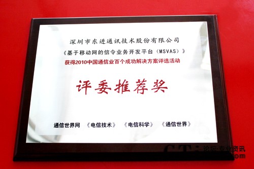 從2010年7月起評選進入征集階段,經(jīng)過長達3個月的層層篩選,最終百個成功解決方案出爐,并由多家主流媒體公示。東進技術“基于移動網(wǎng)的信令業(yè)務開發(fā)平臺(MSVAS)”解決方案憑借出眾的實用經(jīng)濟性、安全可靠性、靈活性和成熟性,經(jīng)過兩個月網(wǎng)絡初選,和近百位運營商層面專業(yè)人士組成的組委會技術終選后獲此殊榮。