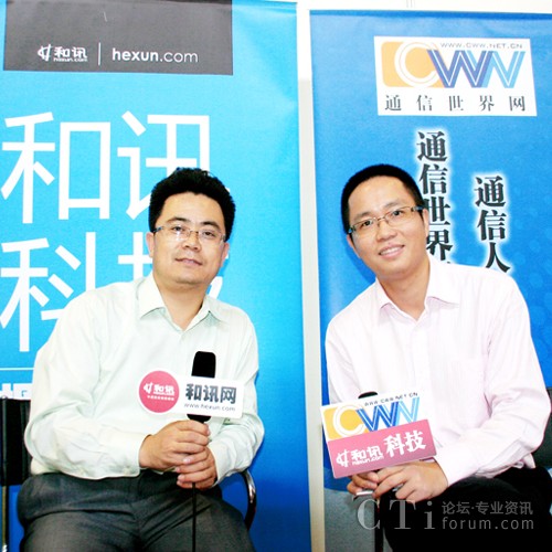 圖:通信世界網(wǎng)總編劉啟程(左)現(xiàn)場(chǎng)訪(fǎng)談東進(jìn)技術(shù)總裁賀建楠(右)