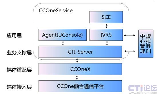 應(yīng)用支撐CCOneService主要由CTI-Server、IVRS、UConsole和SCE組成。    2.4 虛擬管理-VirtualCCOne