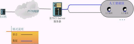 青牛CT-Server服務(wù)器由語音板卡加上青牛CT-Server軟件包組成,其特點(diǎn)是安裝容易、價格低。這種類型的呼叫中心已經(jīng)具有了語音導(dǎo)航和人工服務(wù)的功能,可以處理小壓力的客戶呼叫了。