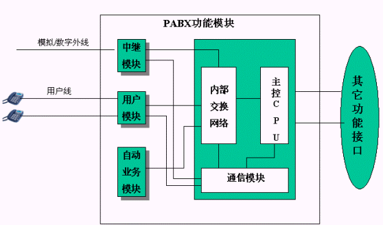 ·輔助功能模塊(如VoIP、自動傳真、語音信箱、電話會議、郵件服務器、Web服務器等)和開發(fā)接口等