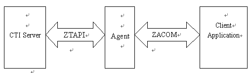 通常呼叫中心的座席軟件都需要用戶定制,以便在標準的座席功能上加入業(yè)務處理功能,并且要求能與業(yè)務系統交換數據。用戶可以利用ZTAPI接口直接定制自己的座席軟件,也可以使用Agent軟件自帶的COM開發(fā)接口來實現同樣的功能。后者是一種更便捷的機制,因為可以直接使用ZingServ®標準的座席軟件--Agent的座席功能,用戶可以把更多的精力投入到業(yè)務處理功能,使用ZACOM要求使用時需運行Agent軟件。ZACOM開發(fā)結構示意圖如下: