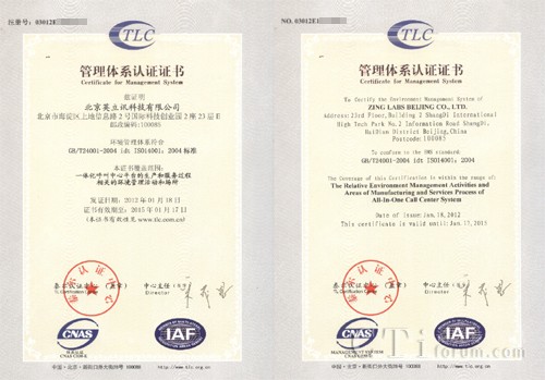 北京英立訊科技有限公司于2012年2月順利通過(guò)ISO14001環(huán)境管理體系認(rèn)證,ISO14001環(huán)境管理體系標(biāo)準(zhǔn)是ISO14000系列標(biāo)準(zhǔn)中一項(xiàng)重要標(biāo)準(zhǔn)。