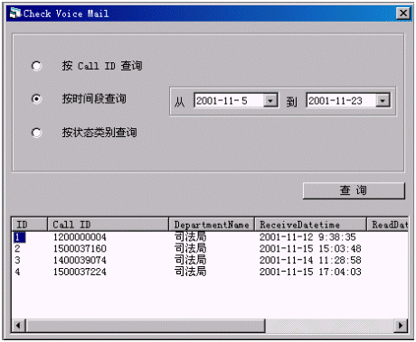 用戶電話進入中心,并轉(zhuǎn)至坐席,此時如果坐席處于忙或非工作時間,中心會自動提示用戶留言,留言后坐席在一定的時間內(nèi)給予回復處理,并在處理的同時對所有的語音留言Voice Mail做狀態(tài)分類統(tǒng)計。中心還對用戶留言的處理過程進行跟蹤,以便防止大量語音留言不能得到及時處理,影響中心的服務質(zhì)量。
