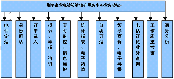 隨著國(guó)內(nèi)煙草專賣體制市場(chǎng)化進(jìn)程的不斷推進(jìn),在煙草全行業(yè)建立以"電話訂貨、網(wǎng)上配貨、電子結(jié)算、現(xiàn)代物流"為基本特征的現(xiàn)代流通體制已經(jīng)成為必然的選擇,實(shí)現(xiàn)煙草專賣體制下舊的和落后的營(yíng)銷體制向現(xiàn)代營(yíng)銷體制的轉(zhuǎn)變。煙草企業(yè)建立電話訪銷/客戶服務(wù)系統(tǒng)的目標(biāo)是最大程度地提高客戶的滿意度,其核心是實(shí)現(xiàn)高水平的建設(shè)水平,提高企業(yè)對(duì)市場(chǎng)的控制力,最終保證企業(yè)擁有持續(xù)的競(jìng)爭(zhēng)力和良好的贏利。