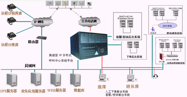 物流是商業(yè)發(fā)達(dá)社會(huì)必然高速度發(fā)展的產(chǎn)業(yè)之一,不僅僅要求物品從供應(yīng)地向接收地的實(shí)體流動(dòng)過程,同時(shí)也是信息流和資金流的過程,根據(jù)實(shí)際不同的需要,需要運(yùn)輸、儲(chǔ)存、裝卸、搬運(yùn)、包裝、流通加工、配送、信息處理等基本過程有機(jī)結(jié)合,從而完成用最短的時(shí)間合理將物品運(yùn)向目的地。在整個(gè)物流過程中,涉及到的各個(gè)環(huán)節(jié),分散在不同的區(qū)域,需要一個(gè)信息平臺(tái)將整個(gè)物流環(huán)節(jié)聯(lián)接起來,及時(shí)把握客戶的定貨需求,進(jìn)行車輛的調(diào)度管理,庫存管理以及票據(jù)管理等,力求實(shí)現(xiàn)用最少的庫存,最短的運(yùn)輸距離滿足客戶的需求。現(xiàn)代物流企業(yè)與以往的物流企業(yè)不同,不僅僅局限于物流中的某一個(gè)環(huán)節(jié),而是普遍采用了信息化管理技術(shù),如ERP、物流管理(LM)、SCM等應(yīng)用系統(tǒng),并通過Internet將遍布在各地的物流中心與客戶連接起來,形成一個(gè)高效率的物流配送網(wǎng)絡(luò)。建立在奧迪堅(jiān)IPDCC的分布式呼叫中心平臺(tái)上的光大科技物流客戶服務(wù)系統(tǒng),以IP技術(shù)為核心在網(wǎng)絡(luò)上構(gòu)建一個(gè)語音和數(shù)據(jù)的統(tǒng)一平臺(tái),在一臺(tái)服務(wù)器上融合了CTI、PBX、ACD、VoIP、Voice、Mail,Recording,Call