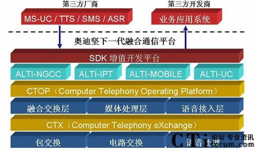 強(qiáng)雄飛:首先,從技術(shù)標(biāo)準(zhǔn)上,奧迪堅具有獨一無二的CTX(Computer Telephony Exchange)技術(shù)標(biāo)準(zhǔn),完全自主知識產(chǎn)權(quán)的融合交換技術(shù),可以將IP包交換、電路交換及語音處理的機(jī)制融合在一起,可以將IP-PBX與CTI功能的核心融合。可以實現(xiàn)完全無縫融合的應(yīng)用,將IP語音處理與模擬語音處理統(tǒng)一地在一個系統(tǒng)上實現(xiàn),將呼叫中心應(yīng)用與辦公電話應(yīng)用有機(jī)地整合在一起。