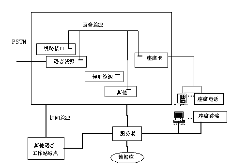 所謂的PC方式就是計算機+語音板卡,即在微機平臺上集成各種功能的資源處理卡,完成通信接口、語音處理、傳真處理、座席轉接等功能,再結合外部的計算機網絡實現各種應用系統的需求。整個系統是一個Client/Server結構的微機網絡。