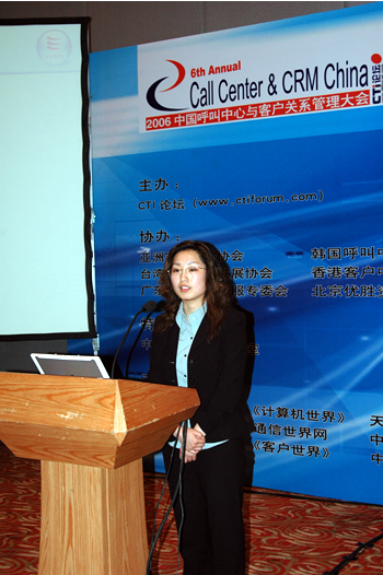 2006年4月3日至5日,2006中國呼叫中心與客戶關(guān)系管理大會在北京國際會議中心隆重召開,以下是億迅(中國)最佳商業(yè)模式咨詢顧問經(jīng)理孫莉?qū)n}演講實錄: