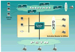 對于普通的傳真機(jī),ExtraFax Router是更合算的選擇。它不僅不需要額外的網(wǎng)關(guān)設(shè)計(jì),而且它還可以自動計(jì)算長途計(jì)費(fèi)單。最重要的是它可以自動尋找最佳路徑 (即最節(jié)省的方式) 通過Internet/Intranet發(fā)送傳真,同時ExtraFax Router基于DID/DTMF/CSID/PORT/Channel的自動分發(fā)到個人的傳真信箱也降低了人工管理的費(fèi)用并能實(shí)現(xiàn)傳真的安全性。