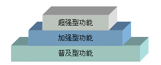 我們針對客戶群范圍的三個層次,也將NBX3000系統(tǒng)功能分成三個層次:普及型功能、加強型功能和超強型功能,分別對應于不同的客戶群。