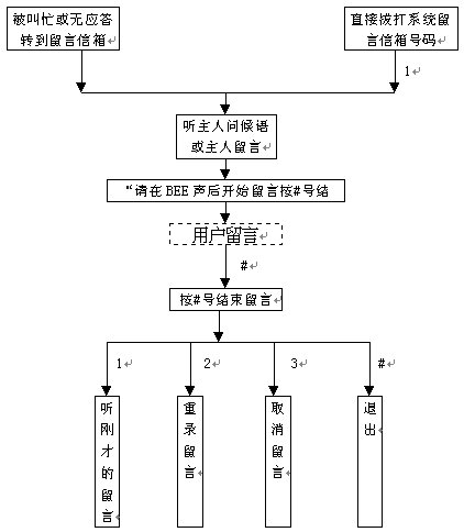 普通用戶是指沒有開設(shè)信箱的用戶,這一類用戶沒有主人訪問權(quán)力。 普通電話用戶可進(jìn)行如下操作: