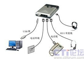 “話務(wù)通”設(shè)計新穎,接口包括電話線路接口、電話機(jī)接口、耳機(jī)接口和USB通信接口。配置立體聲揚聲器和環(huán)型提示燈,提供聲光提示。“話務(wù)通”能夠提供IP網(wǎng)絡(luò)電話,自動應(yīng)答,自動外撥,來電彈屏,語音錄放,語音留言等功能。