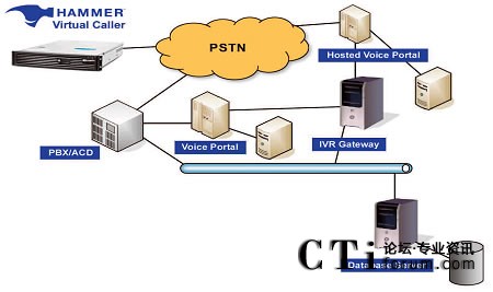 Hammer On-Call IVR測(cè)試關(guān)注呼叫中心的自助服務(wù)技術(shù),以運(yùn)營(yíng)商網(wǎng)絡(luò)為起點(diǎn)和包括從PSTN接受電話呼叫的PBX/ACD系統(tǒng)、處理電話呼叫的IR(自動(dòng)應(yīng)答系統(tǒng))或Voice Portal(語(yǔ)音門戶)、載有面向用戶型業(yè)務(wù)的業(yè)務(wù)服務(wù)器(如VXML)、用于語(yǔ)音激活型業(yè)務(wù)的語(yǔ)音識(shí)別引擎或者是處理DTMF業(yè)務(wù)的DTMF收集器、文本轉(zhuǎn)換成語(yǔ)音的資源、和用于支持自助服務(wù)環(huán)境下運(yùn)行業(yè)務(wù)的所有后臺(tái)系統(tǒng)。