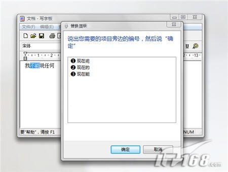 Vista在轉(zhuǎn)譯你的聽(tīng)寫時(shí)很可能會(huì)產(chǎn)生錯(cuò)誤。而只得慶幸的是它們能夠很容易地得到糾正。例如,如果你說(shuō)“我現(xiàn)在能說(shuō)任何”,而Vista輸入的是“我不能說(shuō)任何”,這時(shí)你可以說(shuō)“更正不能”,接著你就會(huì)看到一個(gè)清單,里面列有可替換的詞,如圖10所示。