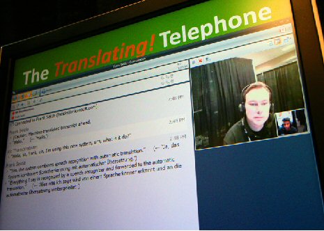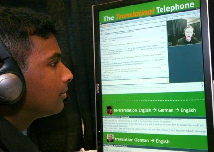Thambiratnam說:“當(dāng)多種不同背景的人需要一起交流時,我們的技術(shù)就能提供非常大的便利。”Thambiratnam用同聲傳譯電話展示了這樣一種的情景:Thambiratnam說英語,他要給他的德國籍經(jīng)理Frank