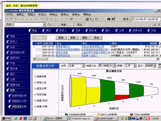 國內(nèi)軟件企業(yè)在實踐中感受客戶需求,同時接受根據(jù)國外CRM的思想,摸索創(chuàng)造出CRM產(chǎn)品,比較典型的是廣智銷售型CRM。廣智公司是廣東比較成功的圖書軟件的開發(fā)商,在圖書軟件的推廣過程中遇到客戶關(guān)系管理的問題,然后研發(fā)了廣智銷售型CRM。