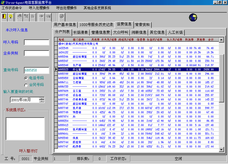 。。Utron-CC2000呼叫中心系統(tǒng)以其強(qiáng)大和靈活便捷的功能,優(yōu)良的性能價(jià)格比,能夠滿(mǎn)足日益發(fā)展的電信企業(yè)客戶(hù)服務(wù)的多方面要求,是為電信用戶(hù)提供高效率、全方位的周到服務(wù),開(kāi)展增值業(yè)務(wù)強(qiáng)有力的工具。