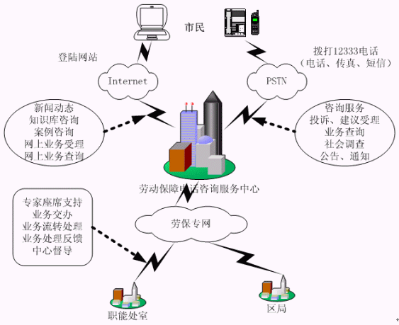 合肥市12333電話咨詢(xún)服務(wù)系統(tǒng)的建設(shè),使勞動(dòng)和社會(huì)保障業(yè)務(wù)延伸到市民、企業(yè)的身邊?朔赜蚝蜁r(shí)間的限制,實(shí)現(xiàn)了每天24小時(shí)不間斷地隨時(shí)提供服務(wù)。該系統(tǒng)的建設(shè)將原本分散在各部門(mén)的對(duì)外服務(wù)業(yè)務(wù)內(nèi)容,集中在一個(gè)統(tǒng)一的對(duì)外服務(wù)"窗口",并與就業(yè)、失業(yè)、養(yǎng)老、醫(yī)療、生育及勞動(dòng)關(guān)系等管理系統(tǒng)建立接口,實(shí)現(xiàn)資源共享,為勞動(dòng)者提供包括電話、傳真、電子郵件、因特網(wǎng)等多種方式熱線咨詢(xún)服務(wù),從而架起勞動(dòng)者與勞動(dòng)部門(mén)之間密切聯(lián)系的橋梁,使廣大勞動(dòng)群眾的權(quán)益真正落到了實(shí)處。樹(shù)立勞動(dòng)和社會(huì)保障行業(yè)系統(tǒng)的良好服務(wù)形象。推動(dòng)勞動(dòng)保障局管理和服務(wù)的社會(huì)化,實(shí)行全面的標(biāo)準(zhǔn)化、規(guī)范化、制度化和網(wǎng)絡(luò)化的完善的服務(wù)。