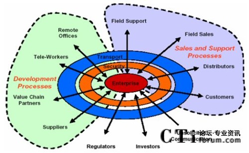 不同公司,生辰八字不同,發(fā)家史不同,決定了企業(yè)利益戰(zhàn)略點(diǎn)的不同,對(duì)統(tǒng)一通信的市場(chǎng)切入點(diǎn)和定位目標(biāo)就存在一些差異。軟件商采用以桌面軟件為基礎(chǔ),從上往下滲透的策略,設(shè)備商采用從基礎(chǔ)架構(gòu)出發(fā),從下往上突破的策略,但對(duì)統(tǒng)一通信的基本認(rèn)識(shí)可統(tǒng)歸為:以用戶為中心,實(shí)現(xiàn)跨時(shí)空的無(wú)限溝通。這里拋棄了網(wǎng)絡(luò)、終端、融合、平臺(tái)等技術(shù)層面的東西,而是完全從業(yè)務(wù)層面迎合了企業(yè)客戶的基本需求,企業(yè)聽(tīng)到了自然心動(dòng)。“要致富先修路”,企業(yè)要發(fā)展,就必須先修好這條通信大道。從中,我們也可看出統(tǒng)一通信不是一種技術(shù),也不是一項(xiàng)應(yīng)用,而是一種需求、一種企業(yè)對(duì)網(wǎng)絡(luò)、通信技術(shù)成熟發(fā)展之后的需求滿足的期望。此外,通過(guò)對(duì)這些主要廠家的UC解決方案進(jìn)行分析,也可以發(fā)現(xiàn),無(wú)論大家的口號(hào)怎樣,PPT里的網(wǎng)絡(luò)架構(gòu)如何多變,卻一致地采用SIP協(xié)議進(jìn)行會(huì)話控制,用IP協(xié)議進(jìn)行數(shù)據(jù)傳輸,通過(guò)應(yīng)用服務(wù)器(或類似網(wǎng)元)提供各種統(tǒng)一通信功能。