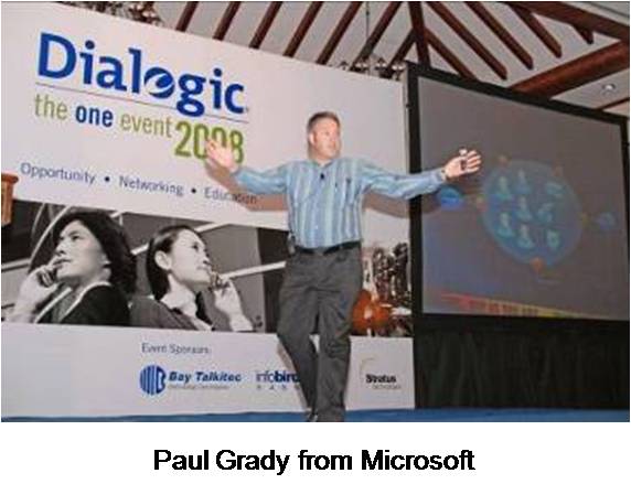 第二天上午,會議以Dialogic總裁兼CEO Nick Jensen強(qiáng)有力的演講開始,隨后是Dialogic執(zhí)行副總裁兼COO Tim Murray和Dialogic市場高級副總裁Jim Machi。 面向整個宴會廳的與會者,全天的會議包括了來自Dialogic產(chǎn)品線總監(jiān)James Rafferty和Dialogic企業(yè)產(chǎn)品線市場經(jīng)理Bud Walder等內(nèi)部演講者,和來自Yankee Group, PT. Excelcomindo Pratama 和Microsoft等外部演講者們激動人心的演講。會議結(jié)束時,由我們的合作伙伴Bay Talkitec贊助,有三個幸運贏家贏得了iPod touch 16G,iPod nano 8G和4G。