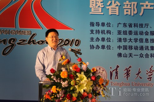 清華大學(xué)企業(yè)集團(tuán)董事長(zhǎng)榮永霖也專程趕到廣州參加啟動(dòng)儀式,并在儀式上做了省校合作的前景展望。清華大學(xué)信息技術(shù)研究院李軍院長(zhǎng)和鄭方副院長(zhǎng)分別作了產(chǎn)學(xué)研合作成果報(bào)告和“亞運(yùn)城市名片”的全面介紹。