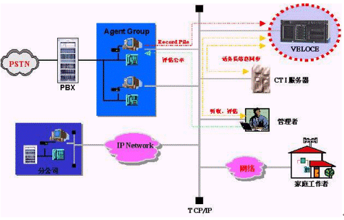 現(xiàn)在國(guó)內(nèi)市場(chǎng)上的絕大部分錄音設(shè)備是基于語(yǔ)音板卡的,而VELOCE 是通過(guò)小巧的USB錄音模塊連接到話務(wù)員PC上,利用數(shù)字語(yǔ)音壓縮技術(shù)和加密技術(shù)把通話內(nèi)容存儲(chǔ)到話務(wù)員PC,