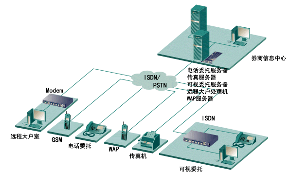1. 同一塊Diva Server PRI (30B+D)卡便能把券商的所有業(yè)務(wù)都集成在一起: 電話傳真委托、可視委托、遠(yuǎn)程大戶室、WAP查詢,短消息服務(wù)等,使方案的集成度做到了最高,性價(jià)比做到了最高。