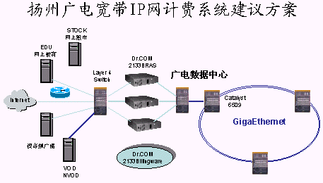 參與此次競標(biāo)的廠家一共有三家,都是在國內(nèi)專門從事寬帶網(wǎng)絡(luò)管理與計(jì)費(fèi)系統(tǒng)的。經(jīng)過多方的調(diào)查與研究,從產(chǎn)品的技術(shù)特性,到產(chǎn)品的價(jià)位,以及產(chǎn)品的售后技術(shù)支持,結(jié)合揚(yáng)州局自身的特點(diǎn),揚(yáng)州有線臺最終選擇了北京城市熱點(diǎn)網(wǎng)絡(luò)技術(shù)有限公司的Dr.com2133寬帶運(yùn)營計(jì)費(fèi)管理系統(tǒng)。