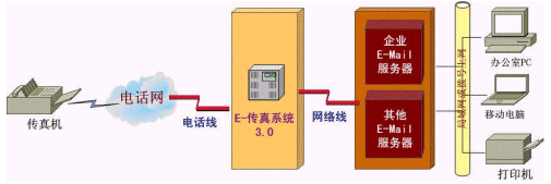 ·各類(lèi)傳真機(jī)接入:目前市場(chǎng)所有傳真機(jī)可以撥打該系統(tǒng),傳真發(fā)送人撥入公司傳真號(hào)后,根據(jù)語(yǔ)音提示輸入傳真分機(jī)號(hào),把傳真發(fā)給相應(yīng)的接受人;不知道分機(jī)號(hào)的把傳真發(fā)給傳真總機(jī)。