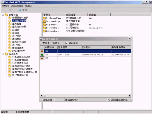 。。提供關(guān)于人工座席呼叫部分所有功能,班長臺(tái)提供除普通座席功能其他很多增強(qiáng)功能,詳細(xì)功能說明參見本方案第5.5節(jié)《人工座席》,那里有非常詳細(xì)的說明。