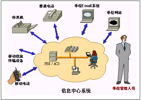 客戶信息中心有兩個層次的含義,首先它是一個信息中心,它應該可以訪問到后臺現(xiàn)有的各種系統(tǒng),如OA系統(tǒng)、信息發(fā)布系統(tǒng)、物流系統(tǒng),同時它還應該有良好的擴展性,可以和未來的其它系統(tǒng)相銜接,比如CRM系統(tǒng)、ERP系統(tǒng)相接;其次它是一個圍繞客戶的信息中心,它應該為客戶提供方便的信息交流手段,這就要求我們能夠通過多種媒介實現(xiàn)信息交互。
