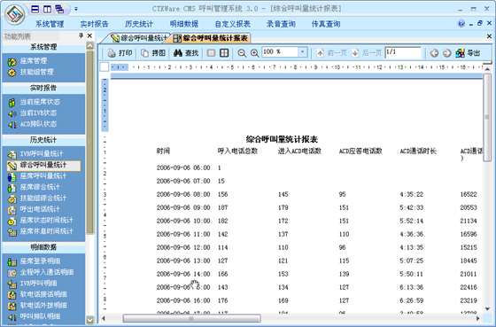 綜合呼叫量統(tǒng)計(jì):可以根據(jù)“月份”、“天”、“小時(shí)”、“半小時(shí)”、“周”來(lái)統(tǒng)計(jì)綜合呼叫量。統(tǒng)計(jì)的指標(biāo)包括:呼入電話總數(shù)、進(jìn)入ACD電話總數(shù)、ACD應(yīng)答電話數(shù)、ACD通話時(shí)長(zhǎng)、ACD放棄電話數(shù)、軟電話呼出電話數(shù)、軟電話呼出時(shí)長(zhǎng)、排隊(duì)接通率。