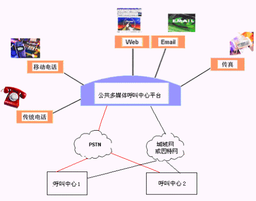 客戶利用電話、傳真、電子郵件、因特網(wǎng)、手機(jī)、短消息等進(jìn)入城市公共多媒體呼叫中心平臺,本系統(tǒng)依托現(xiàn)有各專業(yè)呼叫中心/使用城市公共多媒體呼叫中心平臺租賃服務(wù)的企事業(yè)單位的各類業(yè)務(wù)技術(shù)支持系統(tǒng)和網(wǎng)絡(luò)系統(tǒng),通過人工受理或自動語音服務(wù)等方式全天24小時不間斷地為客戶提供各種服務(wù)。